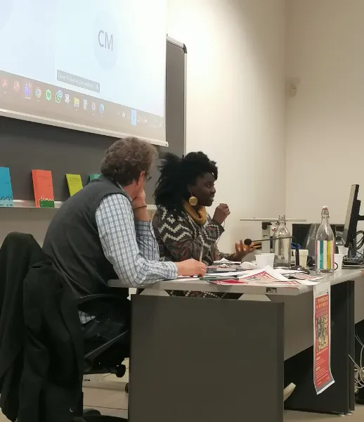Buone pratiche per realizzare queste nuove narrazioni sono state portate da Luca Lotano - dottorando all’Università di Palermo e operatore culturale di Asinitas, oltre che coordinatore di progetti editoriali come Le.Re.M. , esperienze di giornalismo plurilingue, comunitario e partecipato - e Paule Roberta Yao - mediatrice linguistico-culturale, divulgatrice antirazzista e autrice finalista di DiMMi 2019. Entrambe le esperienze citate, infatti, mostrano la potenza che una comunicazione fatta dalle persone migranti, e non necessariamente su di loro, può restituire a chi partecipa, ma anche a chi riceve il messaggio veicolato. Perché come ci ha tenuto a ribadire Luca “è necessario che per produrre una cultura davvero collettiva si includa e si tenga conto di tutti gli sguardi che emergono nelle nostre comunità, e si costruisca lo spazio affinché le competenze dei partecipanti diventino parte del tessuto comunicativo della città”. Paule è stata testimone - e, al tempo stesso, una protagonista - di ciò che Luca ha esposto; riportando la sua esperienza di partecipante a percorsi di narrazione autobiografica e scrittura come strumento di cittadinanza, ha descritto la forza che può nascere dall’autonarrazione e la sua portata politica.